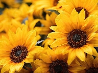 Zbliżenie, Słoneczniki, Kwitnące