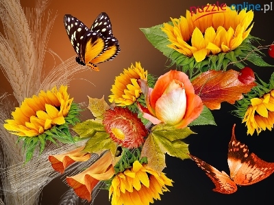 Puzzle Zbóż, Kwiaty, Kłosy, Motyle
