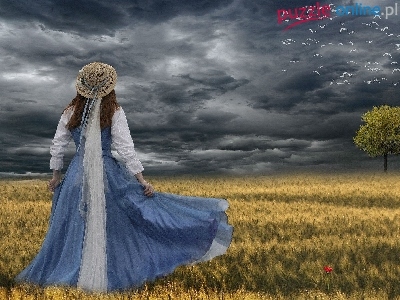 Zboża, Ptaki, Pochmurne, Niebo, Kobieta