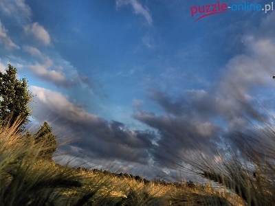 Puzzle Drzewa, Zboże, Chmury