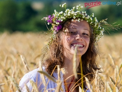 Puzzle Zboże, Dziewczyna, Pole, Wianek