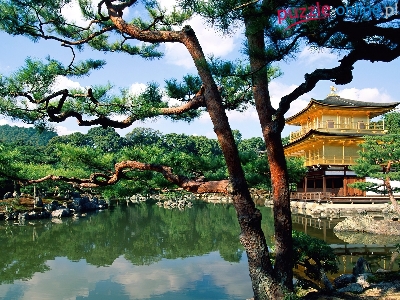 Zdobiony, Azja, Jezioro, Drzewa, Dom