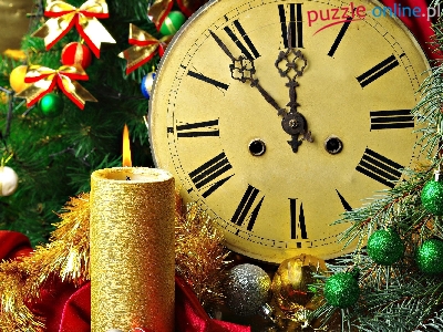 Puzzle Zegar, Kompozycja, Noworoczna, Åšwieca