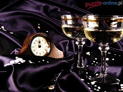 Zegar, Godzina, Lampki, Szampana, Dwunasta