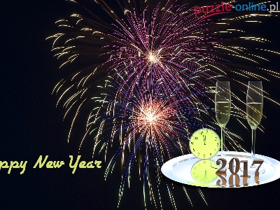 Zegar, Kieliszki, Życzenia, Fajerwerki, Taca, 2017