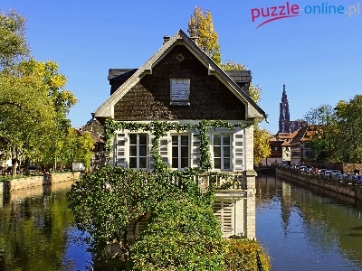Puzzle Zieleń, Rzeka, Dom, Francja