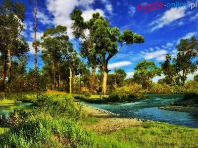 Puzzle Zieleń, Jezioro, Drzewa, Przyroda