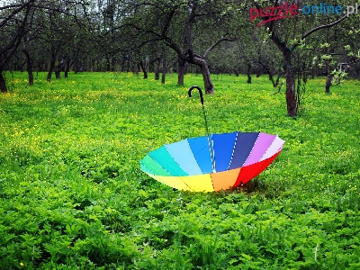 Zieleń, Parasol, Sad, Drzewa, Tęczowy