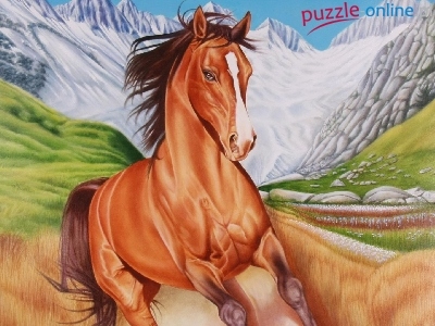 Puzzle Zieleń, Koń, Góry, Rysunek