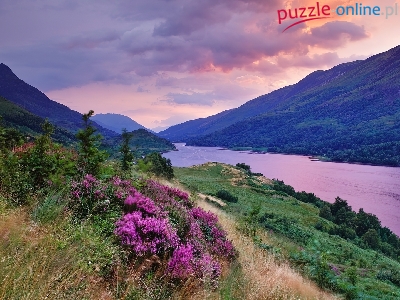 Puzzle Zieleń, Rzeka, Góry, Kwiaty