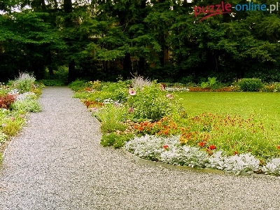 Puzzle Zieleń, Ogród, Kwiaty, Fontanna