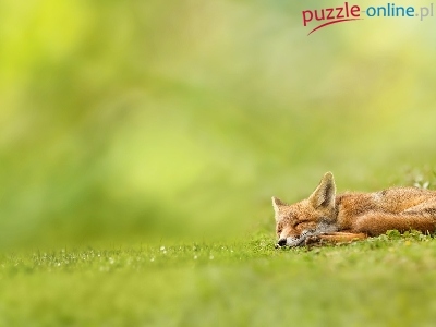 Puzzle Zieleń, Lis, Trawa, Drzemka