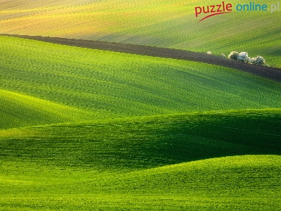 Puzzle Zieleń, Pola, Trawa, Drzewa