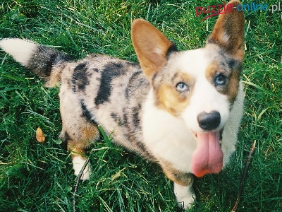 Puzzle zielona, Welsh corgi cardigan, trawa