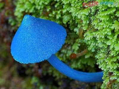 Puzzle Zielona, Niebieski, Grzybek, Roślinka