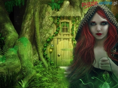 Puzzle Zielona, Kobieta, Kaptur, Kraina