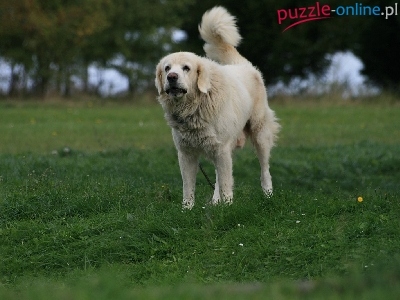 Puzzle zielona, Owczarek podhalański, trawa