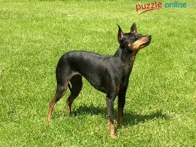 Puzzle zielona, Angielski Toy Terrier, trawa
