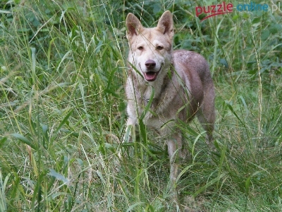 Puzzle zielona, Saarlooswolfhond, wysoka, trawa