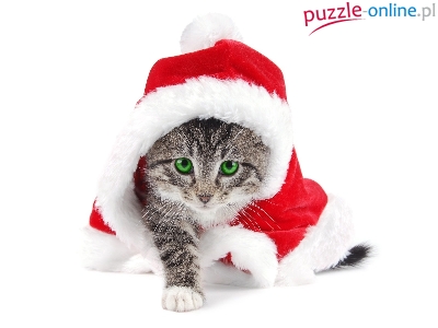 Puzzle Zielone, Kotek, Czapeczka, Oczy