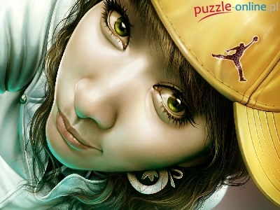 Puzzle Zielone, Dziewczyna, Czapka, Oczy