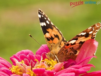 Puzzle Zielone, Motyl, Kwiat, Tło