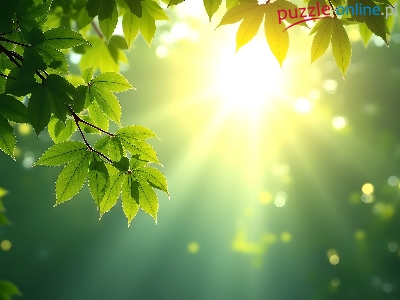 Puzzle Słońce, Zielone, Liście, Grafika AI