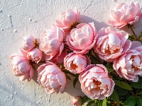 Białe, Piwonie, Różowe, Zielone, Tło, Listki