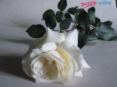 Puzzle Zielone, Biała, Róża, Listki