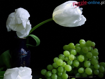 Puzzle Zielone, Białe, Tulipany, Winogrona