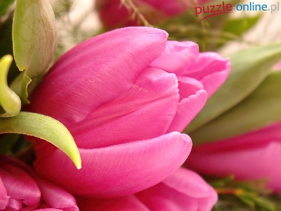 Puzzle Zielone, Różowe, Tulipany, Listki