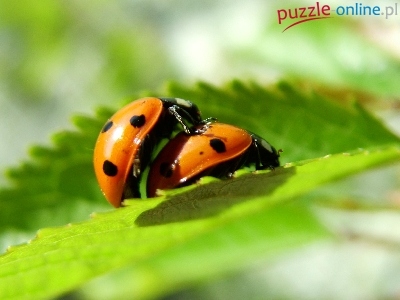 Puzzle Zielony, Dwie, Biedronki, Listek