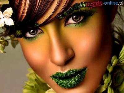 Puzzle Zielony, Twarz, Kobiety, Makijaż