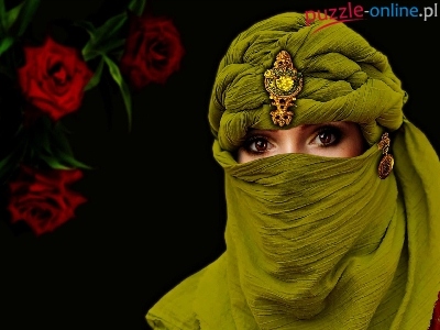 Puzzle Zielony, Dziewczyna, Makijaż, Woal