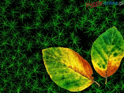 Puzzle Zielony motyw tła, Liście trzy barwy