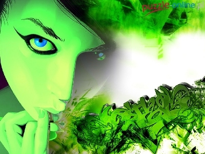 Kobieta, Zielony, Twarz, Grafiti, Szkic