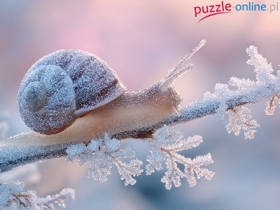 Ślimak, Szron, Gałązka, Zima, Grafika AI