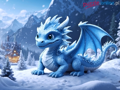 Nowy Rok, Bajkowy, Zima, Smok, Grafika, Domki