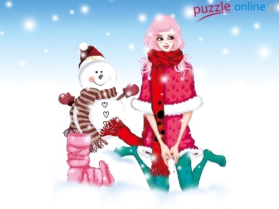Puzzle Bałwan, Zima, Kobieta