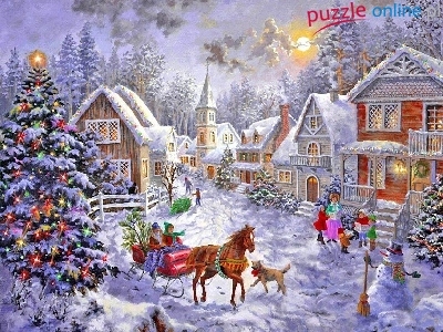 Puzzle Zima, Miasteczko, Choinka, Boże Narodzenie
