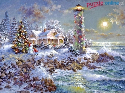 Puzzle Zima, Dom, Latarnia Morska, Boże Narodzenie