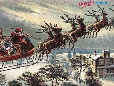 Puzzle Zima, Mikołaj, Sanie, Boże Narodzenie