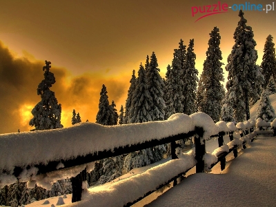 Zima, Słońca, Taras, Zachód, Chmury, Ośnieżony