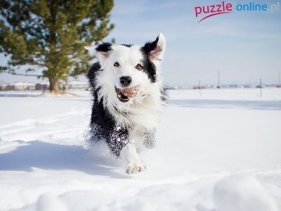 Puzzle Zima, Pies, Border Collie, Śnieg