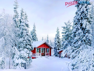 Zima, Drzewa, Czerwony, Domek, Ośnieżone
