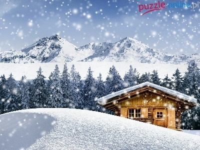 Zima, Las, Drewniany, Domek, Góry
