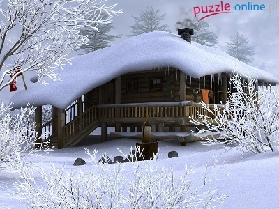Puzzle Śnieg, Domek, Zima, Drzewka