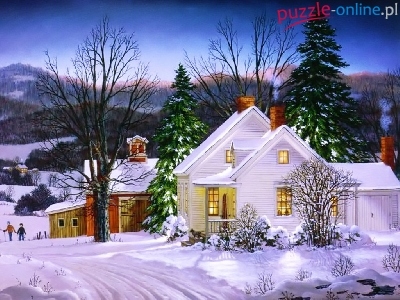 Puzzle Domki, Zima, Drzewa