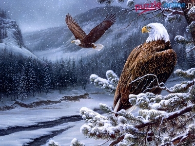 Zima, Orły, Art, Dwa, Góry, Las