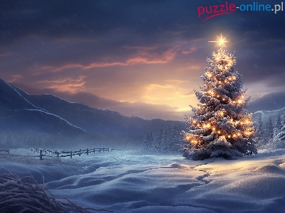 Boże Narodzenie, Góry, Zima, Zaspy, Grafika, Choinka